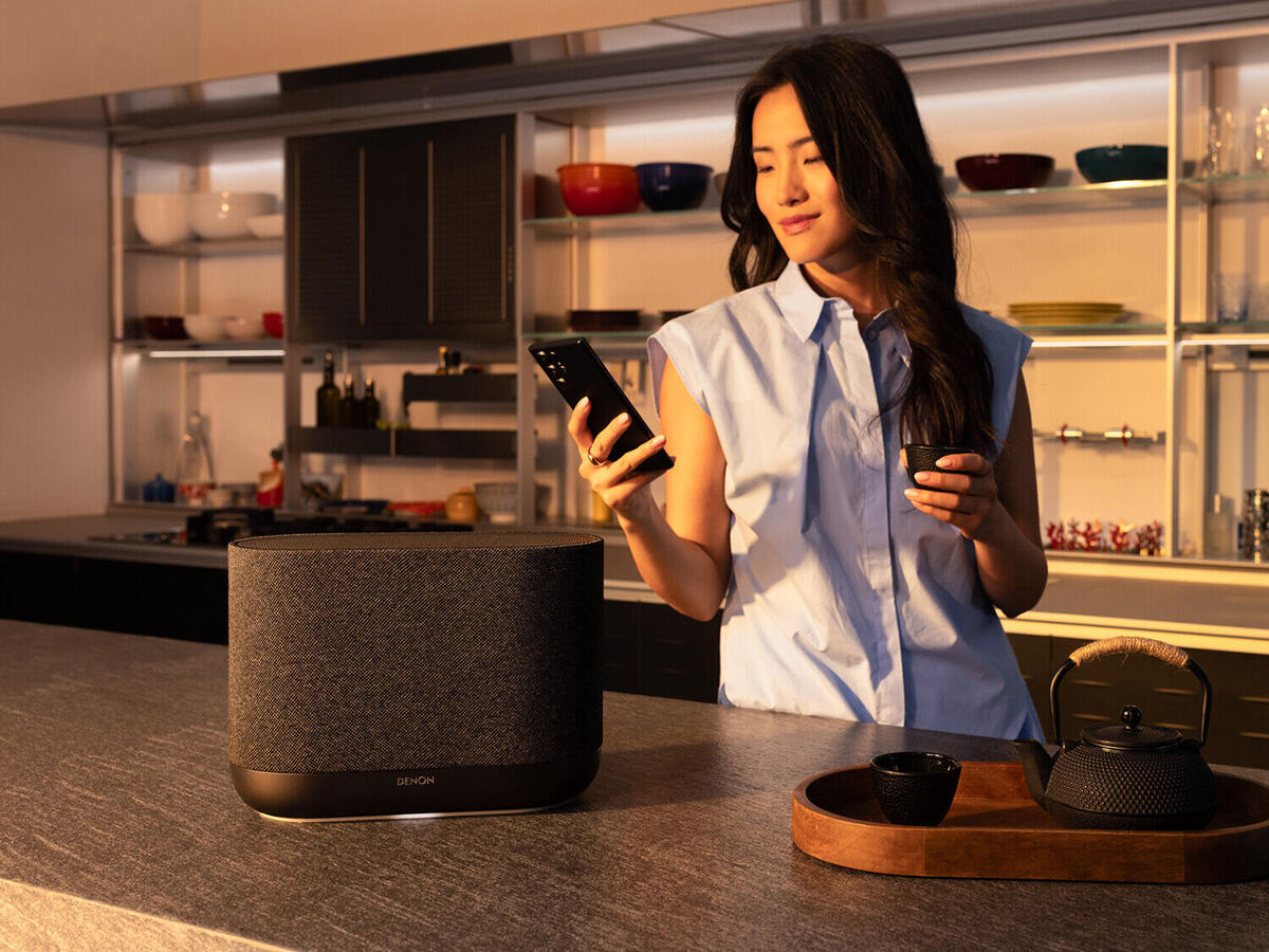 Urządzenie jest gotowe do pracy w zaledwie kilka minut od rozpakowania. Intuicyjna aplikacja HEOS umożliwia błyskawiczne połączenie z siecią i wygodne sterowanie muzyką, źródłami oraz pomieszczeniami. Dzięki temu użytkownik może bez problemu zarządzać odtwarzaniem i korzystać z systemu multiroom w całym domu.