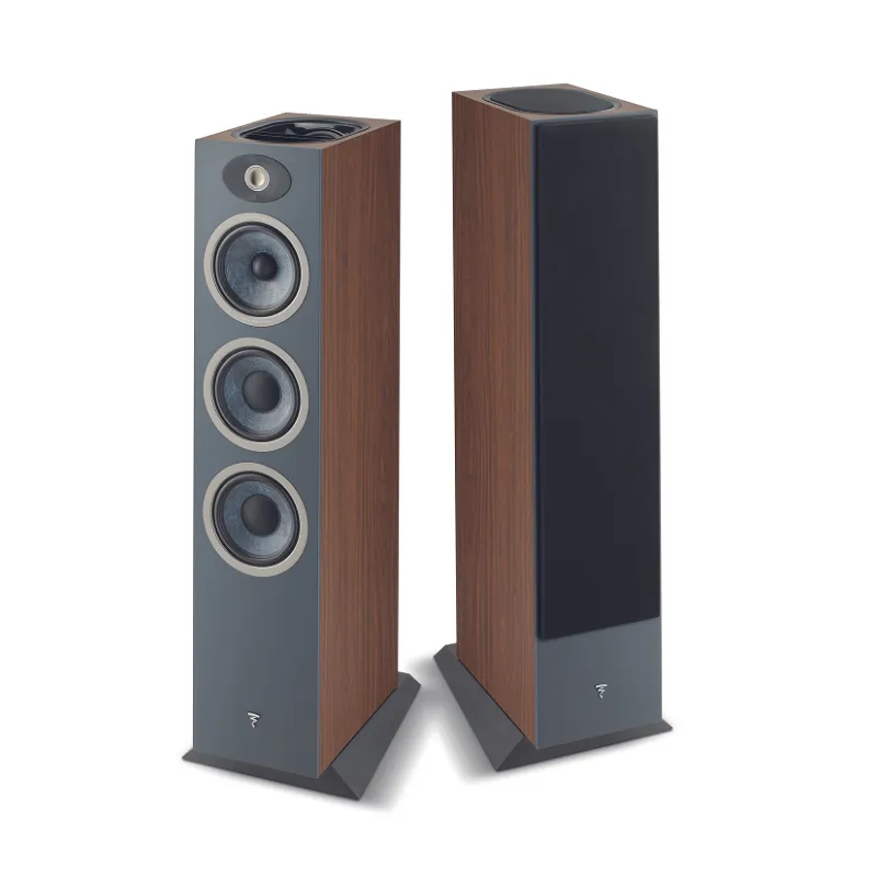 Kolumny podłogowe Focal Theva w ładnym kolorze dark wood są połączone z kanałami przednim i pionowym. Pełnozakresowe głośniki z kierunkową przegrodą dla efektu Dolby Atmos® dają wrażenie przestrzennego dźwięku, co potęguje wrażenia dźwiękowe.