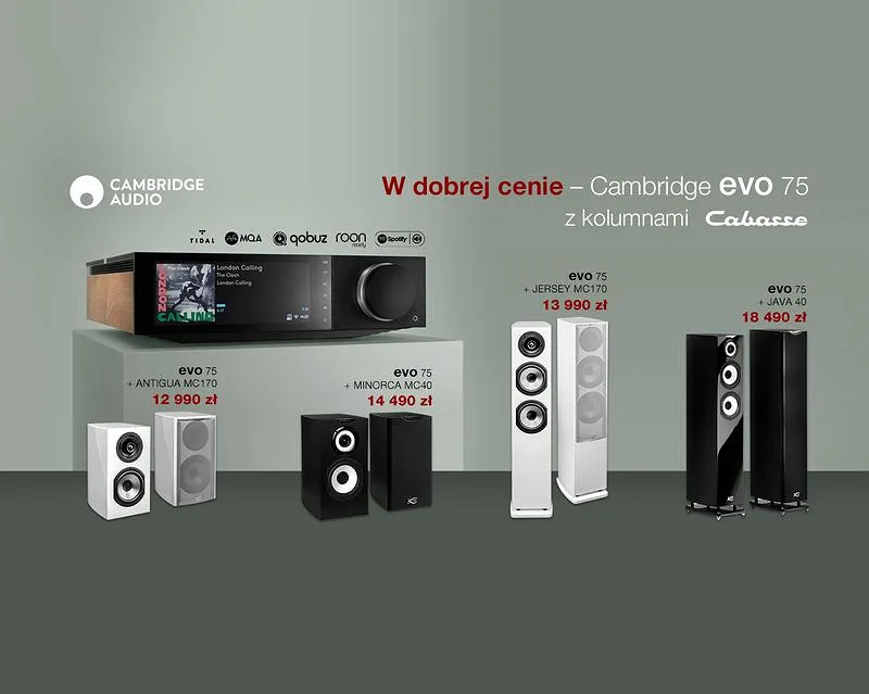 Zapraszamy do skorzystania z promocji na Cambridge Audio EVO 75 z wybranymi kolumnami Cabasse. Do wybrania są zestawy: