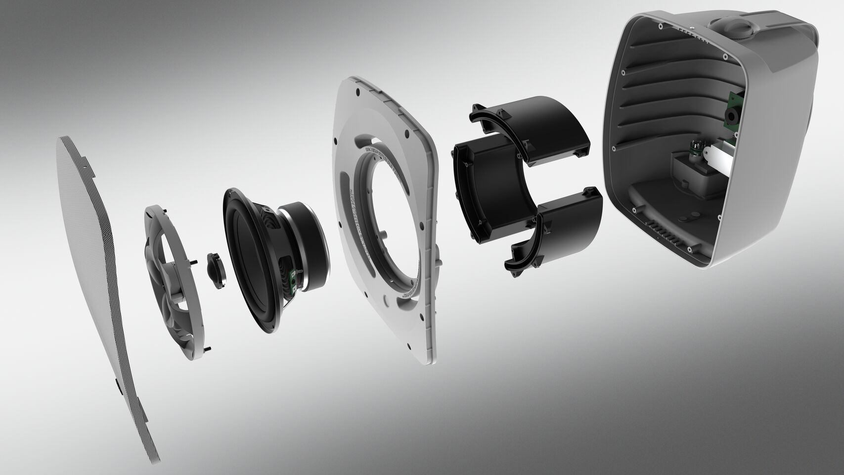 Dołączone śruby ustalające na każdej maskownicy zapewniają bezpieczne dopasowanie głośnika i maskownicy, zapewniając jednocześnie, że maskownice pozostaną na obudowach niezależnie od otoczenia.
