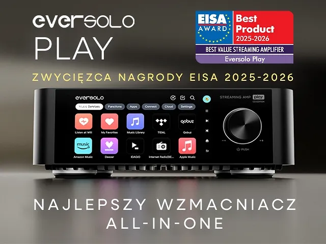 Jak co roku, stowarzyszenie Expert Imaging and Sound Association (EISA) ogłosiło listę nagrodzonych swoją prestiżową nagrodą produktów. Od 1982 roku nagrody EISA uchodzą za jedno z najważniejszych wyróżnień w europejskim i globalnym sektorze elektroniki użytkowej, często wskazując kluczowe kierunki rozwoju rynku. Wśród tegorocznych laureatów znalazły się dwa urządzenia marki EverSolo – EverSolo DMP-A10, który zdobył nagrodę w kategorii „EISA PREMIUM STREAMER 2025–2026”, oraz EverSolo Play, który otrzymał nagrodę „EISA BEST VALUE STREAMING AMPLIFIER 2025–2026”. W poniższym poście przyjrzymy się bliżej obu zwycięskim produktom powyższej marki.