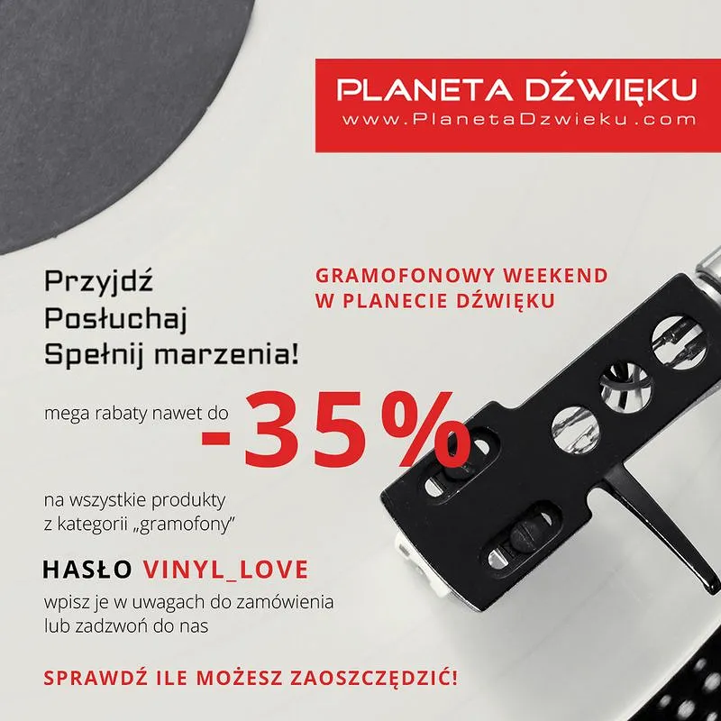 Na wszystkie produkty z kategorii "Gramofony" możesz otrzymać rabat nawet do 35%! Przy składaniu zamówienia w uwagach wpisz hasło VINYL_LOVE lub podaj je przy zamówieniu telefonicznym i sprawdź, ile możesz zaoszczędzić!