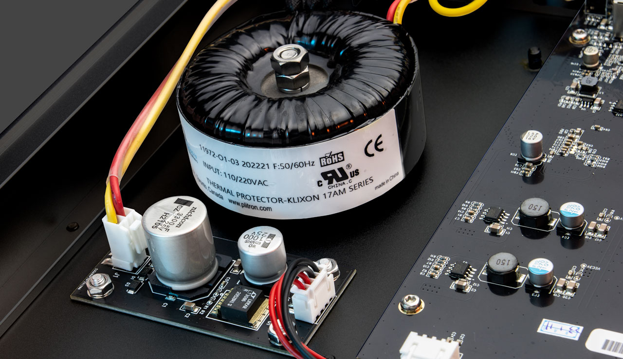 Po raz pierwszy w transporcie LUMIN zastosowano wbudowany liniowy zasilacz z dużym transformatorem toroidalnym, zaawansowanym prostownikiem i dwustopniowymi regulatorami napięcia. Zasilanie to znacząco redukuje szumy i wpływa na czystość oraz stabilność brzmienia.