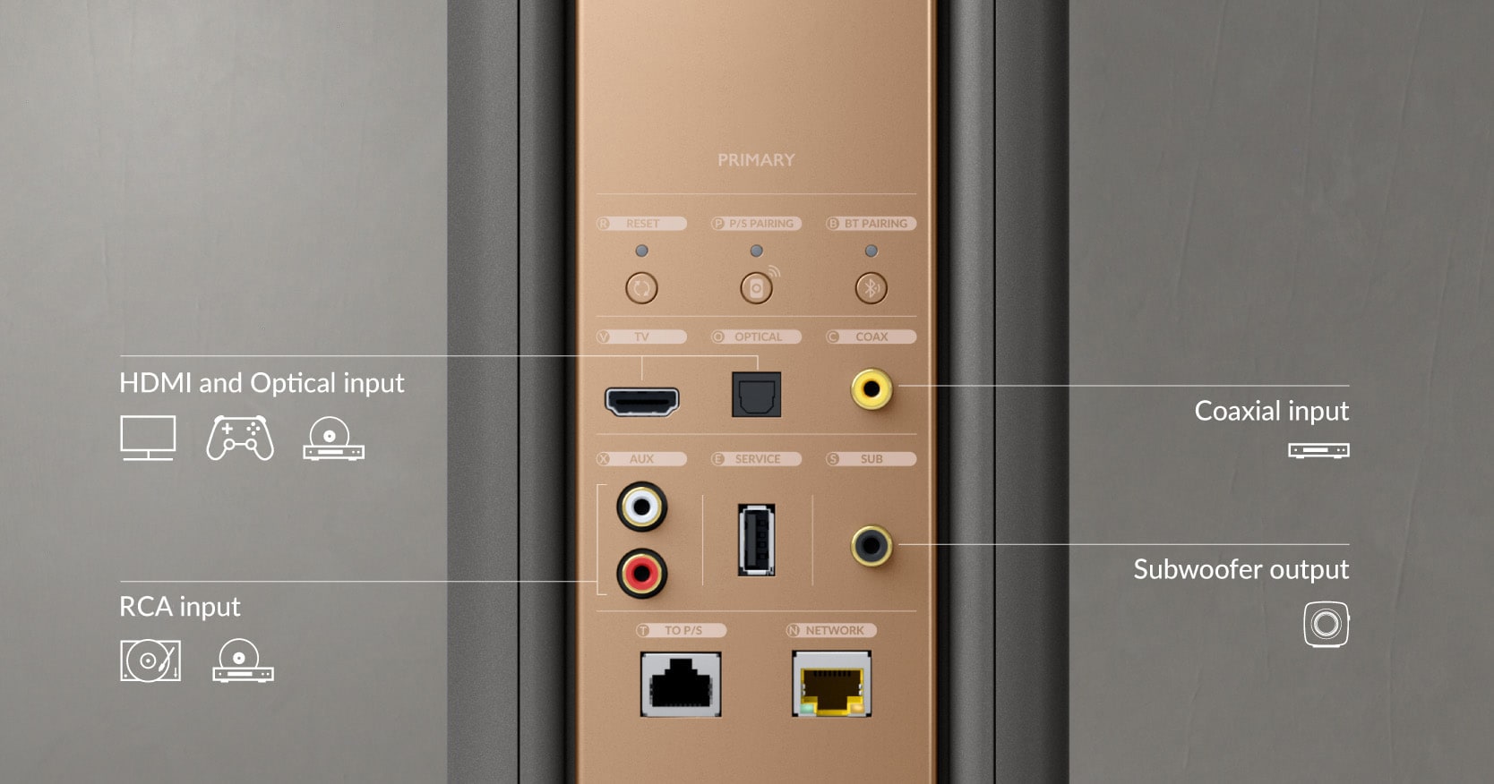 LS60 Wireless obsługuje wszystkie źródła przewodowe, niezależnie od tego, czy lubisz słuchać płyt winylowych na gramofonie, czy chcesz uzyskać najlepszy możliwy dźwięk z odtwarzacza CD i konsoli do gier. Dostępne jest również złącze HDMI (eARC) do wysokiej jakości połączenia z telewizorem oraz dedykowane wyjście na każdym z dwóch głośników do dodania jednego lub dwóch subwooferów aktywnych KEF.
