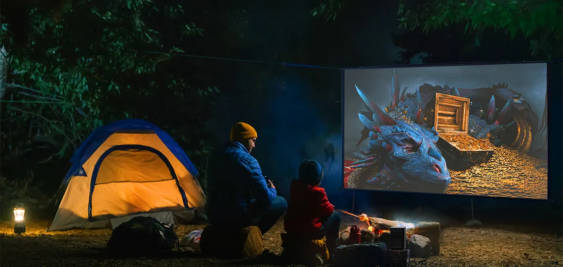 Minimalistyczny i kompaktowy design Halo+ GTV uzupełnia bateria o pojemności 59 Wh, która pozwala na 2,5 godziny pracy bez ładowania. Dzięki temu projektor jest idealnym towarzyszem podczas pikników, biwaków czy plenerowych seansów.