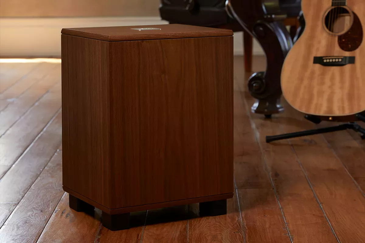 Classic 98 nawiązuje do renomowanych, 10-calowych konstrukcji typu down-firing z końca lat 90. Bogata, naturalna okleina orzechowa emanuje ciepłem i autentycznością, przypominając sprzęt stereo z połowy XX wieku. Zaokrąglona krzywa, zaakcentowana subtelną linią odsłonięcia, demonstruje nowoczesne rzemiosło, jednocześnie honorując dawny design. Tylny panel wzmacniacza z biało-złotymi sitodrukowymi napisami i kontrastowymi pokrętłami przywołuje wspomnienia z tej epoki, podczas gdy błyszczące czarne logo na matowym tle dodaje współczesnego akcentu. Doskonałość wzmacniacza: W latach 90. zaoferowanie wzmacniacza o mocy 300 W w przystępnej cenie było poważnym wyzwaniem. Dzisiaj wykorzystano jeden z najnowszych projektów wzmacniaczy - wysokoprądowy, szybki jak błyskawica wzmacniacz klasy D. Ta nowoczesna elektronika jest nie tylko dynamiczna, ale jest również dowodem zaangażowania REL w dostarczanie najwyższej klasy wydajności bez kompromisów w zakresie przystępności cenowej.