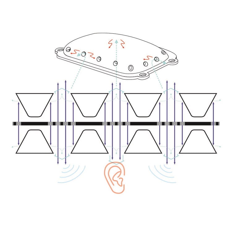 Nowatorski system CAMS to asymetryczna struktura magnetyczna wykorzystująca magnesy w kształcie trapezu, które – w przeciwieństwie do tradycyjnych – nie blokują, lecz regulują przepływ powietrza. Dzięki temu fale dźwiękowe są kierowane bezpośrednio do ucha, zapewniając maksymalną precyzję i czystość dźwięku.
