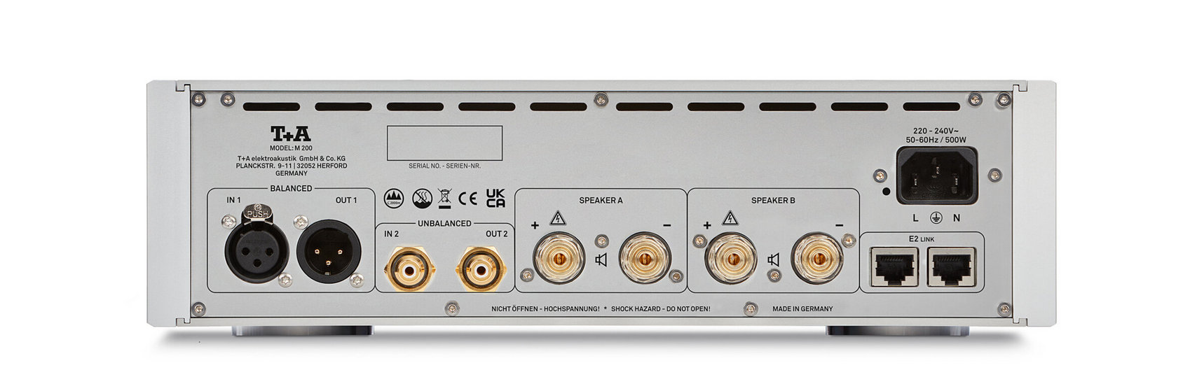 Stopnie wyjściowe M 200 to wzmacniacze mocy klasy D oparte na technologii PURIFI Eigentakt™. Platforma ta, opracowana przez duńską firmę technologiczną, jest obecnie wiodącą na świecie koncepcją wzmacniaczy mocy klasy D i pozwala uniknąć wad wcześniejszych wzmacniaczy cyfrowych. Wcześniejsze konstrukcje wzmacniaczy cyfrowych były ograniczone przez to, że były bardzo zależne od obciążenia i podatne na impedancję używanych głośników, generując zniekształcenia sygnału wyjściowego, szum fazowy i zwiększone zniekształcenia harmoniczne przy wysokich poziomach mocy. W przeciwieństwie do tego, ta nowa koncepcja zapewnia znakomite wyniki pomiarów i jest predestynowana do stosowania w sprzęcie klasy premium: